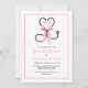 Convite à Festa de formatura da Escola de Enfermagem de Arcos Rosa com fotografia de Formando na parte de trás do convite. Bonito listras brancas e cor-de-rosa, estetoscópio em forma de coração com um grande design de arco cor-de-rosa. Convite de Festa de formatura Nurse RN Registrado. Adicione detalhes de festa de formatura para convidar a família e os amigos a celebrarem o seu formando de enfermeira.