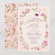 Cartão de convite à festa de formatura Whimsical com ilustração desenhada à mão de flores silvestres prados a cor rosa.
