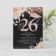 Convite de formatura feminino e sofisticado em rosa e dourado rosa, com flores em aquarela pastel e verde de suculentas e brilho de dourado rosa falso. O modelo elegante é projetado com fundo preto, fazendo com que as flores rosa se destaquem! O ano da turma é encimado por um diploma e o texto 'formado' em caligrafia elegante. Basta personalizar o modelo com os detalhes do seu evento.