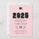 Um convite de festa de formatura moderno e elegante que apresenta "Classe de 2025" em grandes textos brancos no topo, colocado sobre um fundo cor-de-rosa esbranquiçado para uma aparência macia e na moda. Um ícone de boné de formatura personalizável fica bem acima, amarrando-se ao tema. Abaixo, o nome do formando e os detalhes do evento são exibidos em fontes limpas e modernas para um layout fácil de ler. Todas as partes do design, incluindo o boné, fontes e sotaques, podem ser personalizadas para corresponder às cores da sua escola ou ao seu estilo pessoal. Uma maneira nova e elegante de convidar amigos e família para celebrar este marco empolgante.
