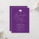 convite para formando de festas de script de letras brancas roxas. O texto e as cores podem ser editados.
