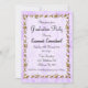 Um convite elegante para festas de formatura roxas, com uma cor damasco elegante e vintage em rosa escuro e roxo. Há também uma armação de ouros ornamentais em metal falso em torno do texto.