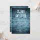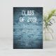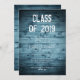 design de festa de formatura segundo grau para rapazes com as palavras, em carateres angustiados, "Classe de 2019", contra a imagem azul da textura rústica da madeira. Personalize facilmente com seus detalhes de celebração, fontes e cores favoritas.