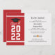 Adicione seu ano de graduação, nome e detalhes do local com data para este moderno fundo vermelho e branco negrito com convite de festa de formatura de tipografia negra usando nosso botão "Personalizar". Convites simples de festa de formatura com rolagem e boné de formatura com cartazes modernos.