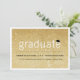 Um cartão com fotos de anúncio de graduação 2 em 1 minimalista moderno e design de convite de festas de formando com uma simples tipografia ousada com conselho de argamassa / sotaque de boné de formatura em uma camada de fundo texturizada de brilho dourado na moda faux que pode ser removida e personalizada com qualquer cor personalizada plana de sua escolha. Os detalhes da foto e do convite da festa estão na parte de trás do cartão. A maioria dos elementos gráficos pode ser alterada para qualquer cor de sua escolha para corresponder às cores da sua escola e a mais opções personalizadas disponíveis na página editar produto. A cor de fundo pode ser alterada para qualquer cor da sua escolha. Concebido por gordura*fa*estanho. Fácil de personalizar com seu próprio texto, foto ou imagem. Para pedidos personalizados, entre em contato direto com o . Encargos personalizados aplicam-se. — https://www.zazzle.com/collections/graduation_party_supplies-119447822100562139 — https://www.zazzle.com/collections/graduation_announcement_cards-119240297798176351 — www.zazzle.com/collections/graduation_party_invitations-119988321070623801 — www.zazzle.com/collections/graduation_thank_you_cards-119015369615228414 — www.zazzle.com/fat_fa_tin www.zazzle.com/color_therapy www.zazzle.com/fatfatin_blue_knot www.zazzle.com/fatfatin_red_knot www.zazzle.com/fatfatin_mini_me www.zazzle.com/fatfatin_design www.zazzle.com/fatfatin_box www.zazzle.com/fatfatin_ink