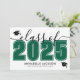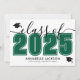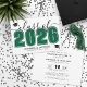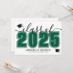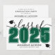 Este convite de formatura horizontal clássico e moderno duplica como um convite de festa. A frente apresenta um "Turma de 2026" superdimensionado em preto e branco em negrito, com o ano em verde esmeralda, complementado por elegantes acentos em script cinza. Dois ícones de boina de formatura adicionam um toque comemorativo, com espaço abaixo para o nome do graduado e da escola. As cores podem ser personalizadas para combinar com as cores da escola para uma aparência personalizada.