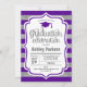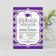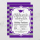 Convite à festa de formatura com tiras roxas e prateadas design simples elegante com cor prateada brilhante e letra de script. Perfeito para uma festa elegante.