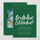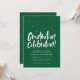 Ponha o tom para uma festa de formatura divertida! Este convite contém as palavras "comemoração da graduação" em um tipo manuscrito lúdico junto com confetti (ou bonés de formatura). O texto é editável permitindo várias comemorações, incluindo várias honrarias, partidos de bloqueio ou uma casa aberta. O texto branco está sobre um fundo verde esmeraldo, mas outras cores estão disponíveis. A parte traseira do convite de festas formando apresenta um padrão de toss confetti/ hat coordenado junto com um lugar para três fotos. Outras fontes de festa de formatura correspondentes também estão disponíveis nesta coleção. E também está disponível como um convite para a festa de formatura digital!