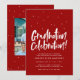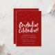 Ponha o tom para uma comemoração divertida! Este convite para a festa de formatura contém as palavras "comemoração da graduação" em um tipo manuscrito lúdico junto com confetti (ou bonés de formatura). O texto é editável permitindo várias comemorações, incluindo várias honrarias, partidos de bloqueio ou uma casa aberta. O texto branco está sobre um fundo vermelho escarlate clássico, mas outras cores estão disponíveis. A parte traseira do convite de festas formando apresenta um padrão de toss confetti/ hat coordenado junto com um lugar para três fotos. Outras fontes de festa de formatura correspondentes também estão disponíveis nesta coleção. E também está disponível como um convite para a festa de formatura digital!
