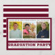 Convite para festas de formatura moderno com três fotos. Inclui um título editável que você pode adicionar à escola e/ou CLASSE DE ano. Os detalhes do convite de festas estão na parte frontal e há um lugar na parte traseira para, opcionalmente, adicionar detalhes sobre o formando ou informações adicionais da parte, como uma data de RSVP e contatos ou direções (exclua o texto do exemplo se não desejar). Esquema de borgonha/marrom, prata e cor branca. DICA DA FOTO: Para obter resultados mais rápidos/melhores, escolha uma foto com o assunto no meio e/ou pré-plante para uma forma semelhante, conforme mostrado ANTES de carregar, e ela preencherá o espaço de fotos perfeitamente. Entre em contato com o designer se quiser que este design seja modificado ou em outro produto.