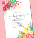 Linda mão pintada de cor d'água, flores tropicais incluindo hibisco, folhas de monstera, e anthurium cercado por este adorável convite para a formatura! Perfeito para seu convite de festa de formatura. Se você está tendo uma formatura temática tropical ou um luau ou seu formando simplesmente ama todas as coisas havaianas você não vai dar errado com essa design de tendências. Veja a coordenação de itens no nosso compro, Encantado Finch.