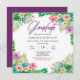 Este boho de folhas verdes e esmeraldas tropicais e um exótico quadro de hibisco rosa, roxo e amarelo são perfeitos para as comemorações da graduação do verão. Apresenta a palavra "Formando" em texto de script ineditável em roxo e preto em um fundo branco.