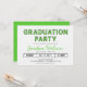 Convite de Festa de formatura moderno com a palavra "Festa de formatura" em verde contra uma faixa diagonal de fundo de cinza. A placa inclui um lado verde correspondente. Personalize-o substituindo o texto do marcador de posição para adicionar suas informações. Para obter mais opções, clique no botão "Personalizar". *Observe que a Marca d'água do Zazzle que aparece na visualização de zoom NÃO aparecerá no produto impresso final. © Rosewood e Citrus