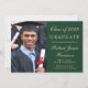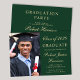 Formandos verde e ouro moderno e clássico, anunciado e convite de festas com uma foto do formando, seu nome e ano de aula em um roteiro elegante e sua universidade, major e honra. Na parte traseira, adicione os detalhes da parte do formando.