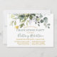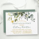 A Festa de formatura verde moderna Elegante inclui folhas de eucalipto, folhagem botânica verde, folhas azuis empoeiradas e outros belos lençóis botânicos. Script de caligrafia de tendências. Boné de Formando Dourado. Sage Green Back.