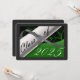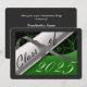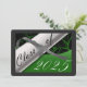 Cartão verde e prateado com diploma e ano de graduação. A parte de trás é uma cinza com letras brancas para os convites para festas de formatura.
