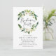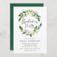 Convites de festa de formatura chic, elegantes, com uma coroa floral branca, com sotaques de folhagem verde e letra de escrita fluente. Personalize os convites para na moda, adicionando seus detalhes de festa de formatura para um design que impressionará seus convidados. O verso dos convites apresenta um fundo de aquarela verde. Para obter um design mais personalizado, adicione a foto do seu formando e o texto personalizado na parte traseira do convite.