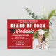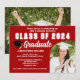 Este convite de festa de formatura personalizado moderno vermelho e branco apresenta uma tipografia branca clássica do nome da sua faculdade para a turma de 2025. Personalize com o seu ano de formatura sob o script manuscrito chique e o chapéu de graduado preto para ótimos convites. Adicione os detalhes da sua festa ou cerimônia ao lado da foto do seu graduado.