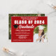Este convite de festa de formatura personalizado moderno vermelho e branco apresenta uma tipografia branca clássica do nome da sua faculdade para a turma de 2026. Personalize com o seu ano de formatura sob o script manuscrito chic e a boina de graduação preta para ótimos convites. Adicione os detalhes da sua festa ou cerimônia ao lado da foto do seu graduado.