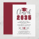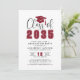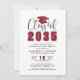 Um convite de festa de formatura elegante e moderno com a turma do ano, como "Turma de 2026" em texto grande e negrito no topo com um ícone de boina de formatura personalizável acima. Abaixo do ano, todos os detalhes do evento são exibidos de forma organizada em fontes modernas simples, incluindo o nome do graduado, data, hora e local da celebração.
