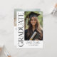 Chame a atenção com este convite de festa de formatura impressionante, apresentando tipografia vertical superdimensionada 'Graduado' ao lado de uma grande foto de formatura para um visual dramático e editorial. O verso adiciona um segundo espaço para foto com detalhes da festa em um layout limpo acentuado por uma fonte elegante. O texto totalmente personalizável em ambos os lados permite que você personalize cada detalhe.