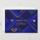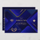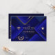 Convite moderno e sofisticado para festa de formatura online virtual com um tema azul e dourado personalizável para suas especificações.