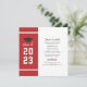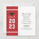 Adicione seu ano de graduação, nome e detalhes do local com data para este moderno fundo vermelho e branco negrito com convite de festa de formatura de tipografia negra usando nosso botão "Personalizar" acima. Convites simples de festa de formatura com rolagem e boné de formatura com cartazes modernos.