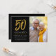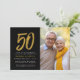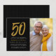 Celebre 50 anos com este convite preto e dourado com brilho falso, apresentando um grande 50 estilizado junto com uma foto dos convidados de honra. Isso funciona bem para um aniversário de 50 anos dourado ou uma festa de aniversário de 50 anos. Também pode ser uma foto de casamento antiga em vez de uma atual!