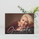 Simples convite para festa de formatura de fotos elegante com uma elegante camada de FORMANDO de script manuscrito em branco com seu nome de formando e ano de classe na frente. Sua convite de festas está atrás. DICA DA FOTO: Escolha uma foto com o assunto no meio e/ou pré-recorte-a para uma forma semelhante ANTES de carregar e usar a ferramenta CROP para ajustar a imagem dentro da área do modelo. ASSISTÊNCIA: para obter ajuda com a modificação/personalização do design, alteração de cor, transferência do design para outro produto ou, se você quiser coordenar itens, entre em contato com o designer ANTES DE ENCOMENDAR através da guia MENSAGEM de bate-papo Zazzle ou por e-mail em makeitaboutyoustore@gmail.com.