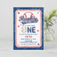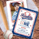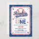 Bonita e aflitiva design de festa de aniversário do menino "Rookie of the Year". Apresenta o texto "Rookie of the Year" no tema do beisebol, com uma bola de beisebol em pé para o "O" em "One", juntamente com a costura do beisebol em torno da estrutura retangular arredondada. A parte traseira apresenta a foto e o nome do seu filho e o gráfico "Rookie of the Year" repetido.