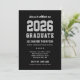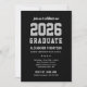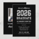 Celebre seu formando com este convite de formatura moderno, apresentando tipografia 'FORMADO EM 2026' em estilo varsity preto, prata e branco, e um layout de foto limpo. Personalize o nome, a escola e os detalhes da festa para um design fácil de ler que parece clássico e sofisticado. O verso coordenado apresenta um layout de foto completo com script 'turma de' para um visual polido e de dois lados.