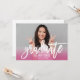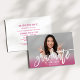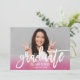 Celebre a graduação com um convite de festa de graduação moderno com uma foto de sangria total, “graduado” em negrito com escrita à pincel branca e um degradê de cor rosa na moda. A personalização limpa e minimalista do nome e do ano de turma mantém o foco na foto. O verso inclui um layout branco coordenado com texto de título rosa correspondente para detalhes da festa. Personalize toda a redação.