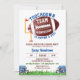 Este convite de festas de fralda com tema de futebol é a forma perfeita de celebrar a chegada de um menino! O convite apresenta um design com gráficos de futebol e a mensagem "Touchdown! Sua equipe está tendo um menino!" Claro que para ser atingido por qualquer futuro pai amante do futebol, este convite é uma forma divertida e única de convidar convidados para uma festa de fralda temática desportiva.