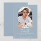 Com um elegante arco dourado em um fundo azul empoeirado, este convite de festa de graduação elegante pode ser personalizado com a foto do seu graduado. Concebido por Thisisnotme©