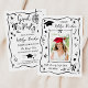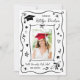 Celebre seu graduado com este convite de formatura divertido e alegre, apresentando uma moldura com rabiscos desenhados à mão e linhas onduladas em preto e branco nítidos. A frente destaca a foto do graduado com esboços caprichosos – touca de formatura, diploma enrolado com laço, estrelas, brilhos, corações, flores minúsculas e serpentinas onduladas – para um visual ilustrado único que parece moderno e personalizado. O verso inclui um design coordenado com a redação do convite de “Festa de Formatura” e todos os detalhes da festa.