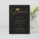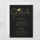 Este convite de festa de graduação com elegante letra preta e dourada pode ser personalizado com os detalhes da sua celebração e foto no verso. Criado por Thisisnotme©