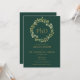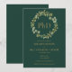 Com uma grinalda botânica elegante e tipografia dourada clássica em um fundo verde esmeralda, este convite de formatura de doutorado pode ser personalizado com o nome e informações do formando. Criado por Thisisnotme