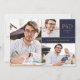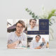 Este convite de festa de graduação de grau de PhD moderno pode ser personalizado com suas 3 fotos especiais de graduação e detalhes da celebração definidos em tipografia dourada em um fundo azul marinho. Projetado por Thisisnotme©