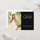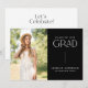Este convite de festa de graduação simples oferece espaço para uma foto vertical e é acentuado com texto elegante branco em um fundo preto. O verso deste convite minimalista moderno oferece texto personalizado para as informações da sua celebração de graduação específica.