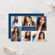 Celebre seu(a) formando(a) com este convite de festa de graduação moderno em azul marinho, apresentando uma colagem de fotos limpa e combinada com tipografia clássica. A paleta de cores azul marinho rica parece atemporal e sofisticada, perfeita para qualquer formando. Personalize com o nome do(a) graduado(a), ano de formatura, escola e detalhes da festa para um design elegante e focado em fotos.