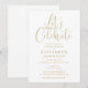 Este convite de festa de graduação com script dourado elegante pode ser personalizado com os detalhes da sua celebração. Criado por Thisisnotme©