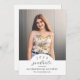 Este convite de festa de graduação fotográfico elegante e sofisticado apresenta uma sobreposição de foto em forma de arco, juntamente com modelos de texto para personalização simples. O verso contém modelos de texto que você pode personalizar para a festa do graduado.