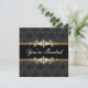 Modelo de convite de festa formal de gravata preta com renda preta e dourado. Adicione seus detalhes na frente e atrás simplesmente escolhendo o botão laranja "Personalize!" para começar a adicionar detalhes do seu evento, estilo de fonte, tamanho e cor da fonte e texto. Observe que - todos os desenhos de convite que você encontrará no Zazzle são gráficos impressos em papel liso sem joias, laços, relevos, rebaixados ou peças ou partes adicionadas.