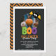Boo do Partido das Bruxas e convite personalizado do Bat... projetado em cinzas laranja e escura com fundo ziguezague - convites de festas de Ricaso