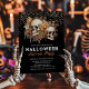 Dê ao seu Halloween o toque de sofisticação que ele merece com nossos convites de festa elegantes. Com um fundo escuro e sofisticado adornado com caveiras em aquarela e flores laranja vibrantes, esses convites capturam a essência do Halloween chique. Nossos modelos fáceis de personalizar e o fundo dourado brilhante com efeito de cascata injetam um toque de terror cintilante em seu evento. Defina o tom certo para a sua noite de Halloween.