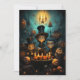 Convite personalizável de festas de Halloween. Noite escura e assustadora com crianças estranhas do Dia das Bruxas se juntando em um toco com velas laranja. Há abóboras estranhas com olhos brilhantes, e rostos assustadores. Mude o texto para ler o que precisar. Use como Convite de aniversário também, basta mudar o texto.