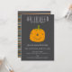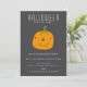 Bonito jack o'lantern, convite da festa de Halloween. Design de tipografia de tendência no estilo modelo em texto branco com fundo de carvão escuro e padrão listrado colorido bonito.