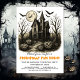 A casa assombrada no coração deste convite é uma vitrine gótica — suas torres pontiagudas e janelas arquitetadas se chocam com a ameaça teatral, conjurando vídeos clássicos de terror. A arquitetura se sente exagerada e estranha, com cordas afiadas que cortam no céu noturno e janelas que parecem te ver de volta. Embora o fundo seja omitido, a silhueta da casa sugere, por si só, isolamento e mistério, reforçados pela sua simetria torta e pela presença iminente. É o tipo de lugar que você esperaria que andorinhas assustadoras, luz de velas tremendo, e talvez um fantasma ou dois espreitando no sótão................... O título "FRIGHTFULLY FUN NOITE" está em uma face gótica e distorcida que evoca casas assombradas e emoções estranhas, enquanto a frase "VOCÊ SERIA FANTÁSTICO PARA PERDER ESTA FESTA!" brinca com uma fonte serif peculiar e exagerada que adiciona um drama lúdico. Os detalhes de suporte, como a data, o local e as informações de RSVP são renderizados em um sans-serif limpo e clássico, fornecendo contraste e legibilidade. As escolhas de tipografia atingem um equilíbrio vivo entre medo e diversão, perfeitamente adequado para uma reunião espirituosa de Halloween.