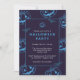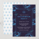 Convite de Halloween chique e moderno com padrões de abóbora em tons de azul com modelo de texto personalizável.