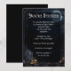 Uma lua de cheio, cabras de cabeça, um jack o'lantern, e velas se combinam para fazer um convite de festas de Halloween assustador e divertido.